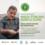 offre un soutien immédiat, gratuit et confidentiel en matière de santé mentale aux agriculteurs canadiens, aux familles d’agriculteurs et aux travailleurs agricoles. Adaptée aux défis uniques auxquels est confrontée la communauté agricole, avec un personnel formé qui comprend les problèmes auxquels les agriculteurs sont confrontés, la ligne de crise est disponible 24 heures sur 24 et 7 jours sur 7, en appelant le 1-866-FARMS01 (1-866-327-6701).